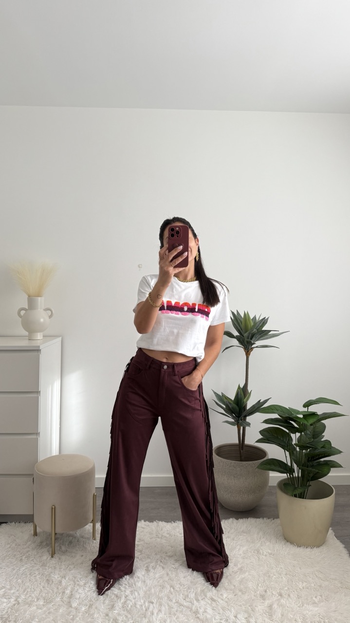 Seja o primeiro a avaliar “Calças bordeaux franjas – Lumina” Cancelar resposta