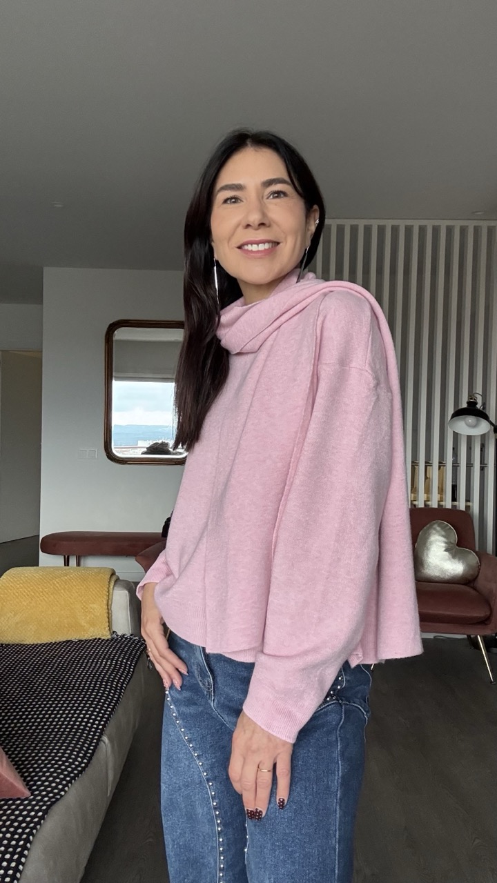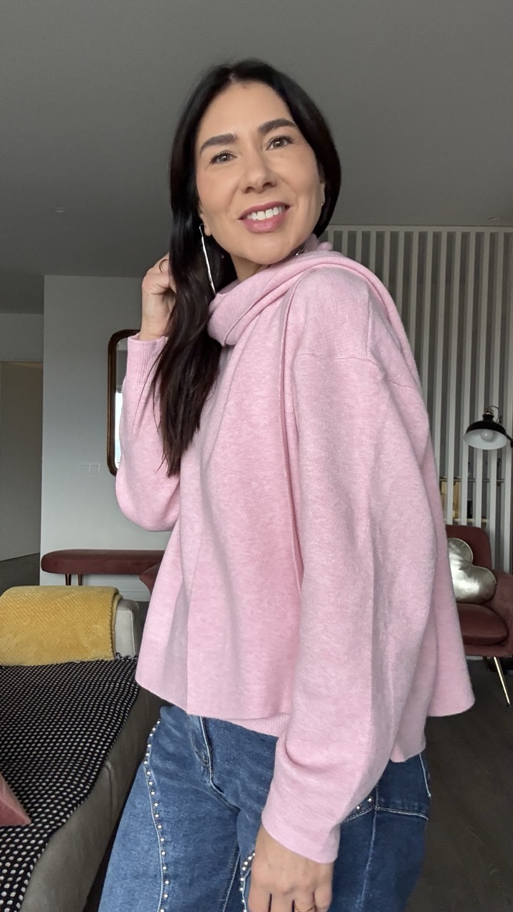 Camisola com cachecol rosa