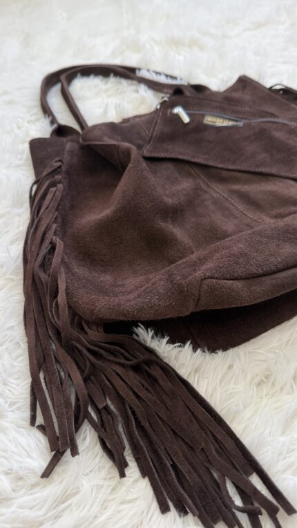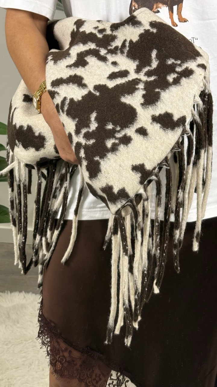Mala padrão vaca com franjas. Super tendência!